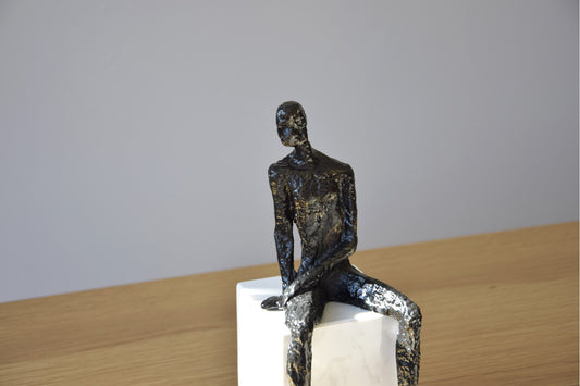 HOMBRE PENSANDO EN METAL BASE MARMOL N1