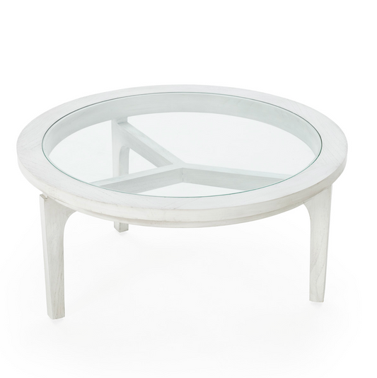 MESA DE CENTRO REDONDA MADERA CEDRO/CRISTAL EN BLANCO