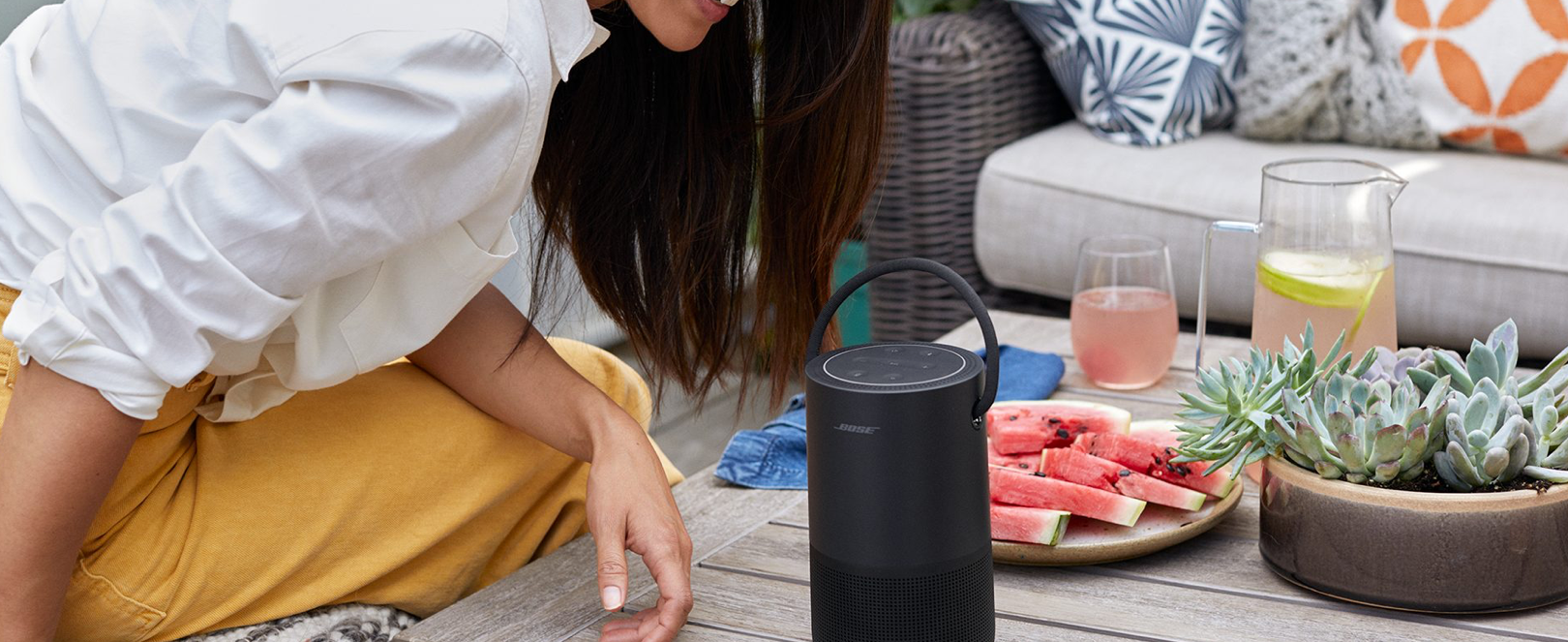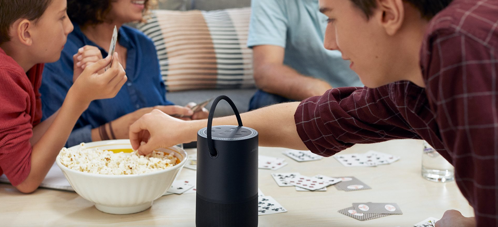 El Bose Portable Smart Speaker es un altavoz doméstico inalámbrico. Puedes trasladarlo de una habitación a otra por toda la casa, y llevarlo contigo cuando salgas de casa. Además, puedes controlarlo con la voz y permite transmitir música directamente desde la nube en cualquier sitio en el que haya Wi-Fi. Si no tienes Wi-Fi, puedes controlarlo por Bluetooth con tu teléfono móvil de la misma manera que cualquier otro altavoz portátil. Sonido Bose en 360 grados.