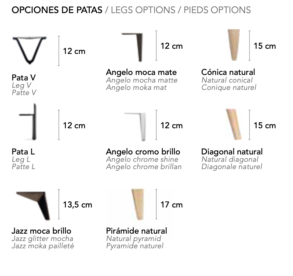 Posibilidad de elegir distintos tapizados, patas y medidas