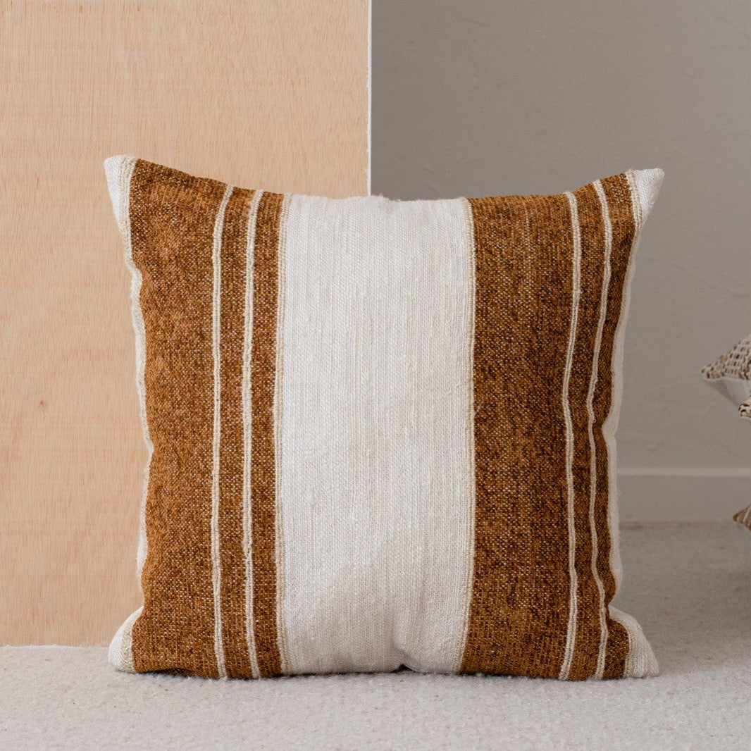 Cojín de algodón modelo minia en color blanco y ocre