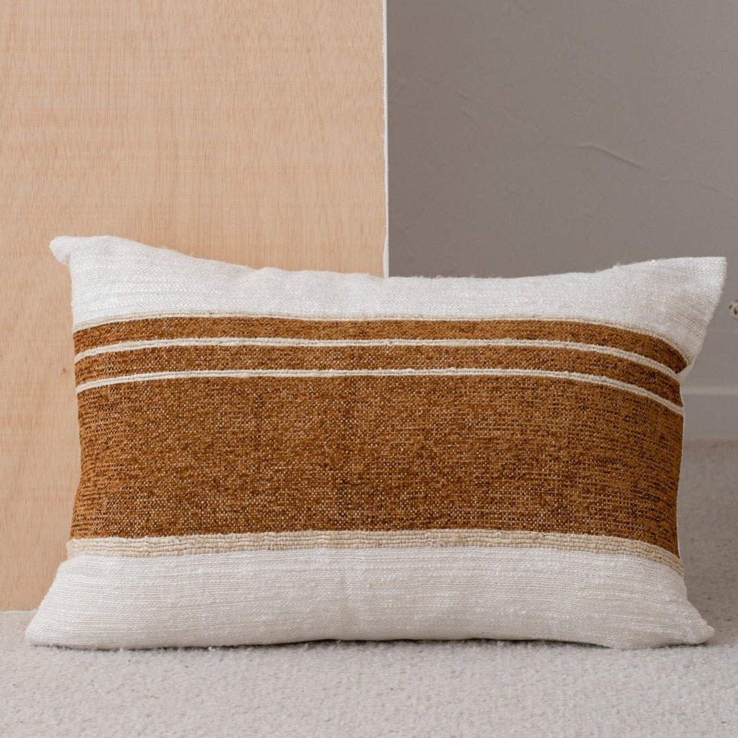 Cojín de algodón modelo minia en color blanco y ocre