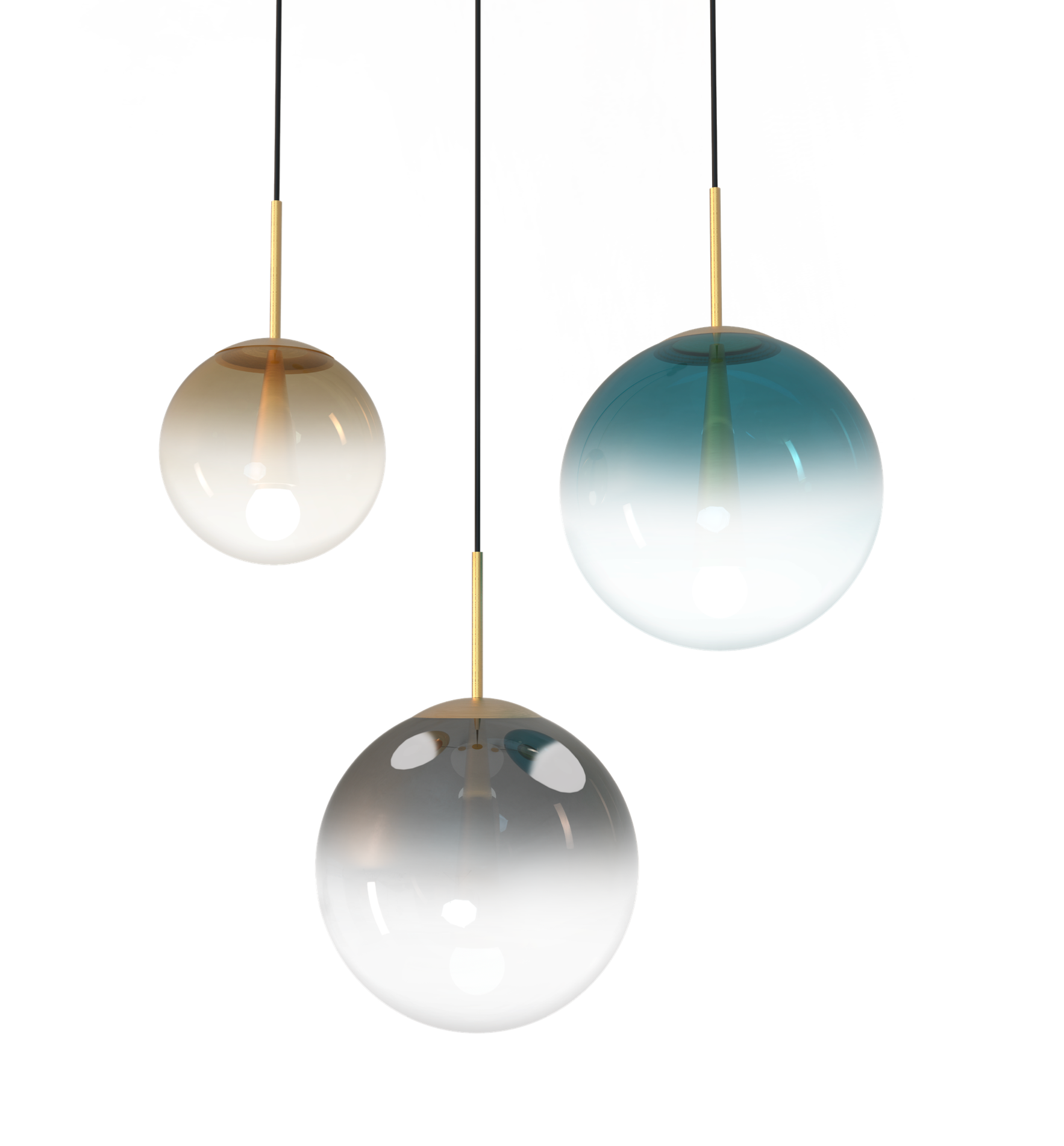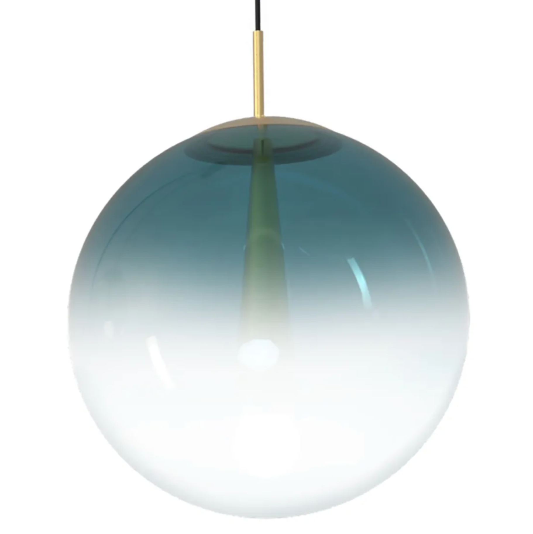 Lámpara modelo EVA hecha en cristal italiano degradado en tono petroleo, con detalles metálicos en bronce cepillado.